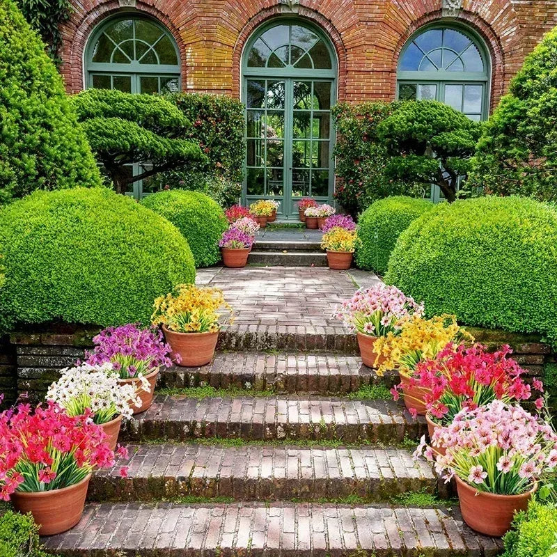 Artificial Flower Outdoor Fake Flowers UV Resistant Plants For Indoor Outside Hanging Plants Garden Porch Window Box Home Decor
